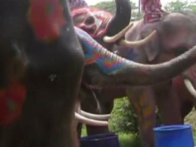 Tailandia: elefantes participaron en celebración del Festival del Agua