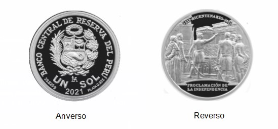 Este martes el Banco Central de Reserva (BCR) emitió una nueva moneda por la conmemoración del Bicentenario del Perú. Se trata de una moneda de plata con denominación de S/ 1, y que lleva en su reverso una representación de la proclamación de la independencia.