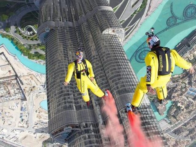 Fred y Vince son los dos deportistas que lograron el nuevo Récord Guinness tras saltar desde la cúspide del Burj Khalifa, el edificio más alto del mundo, ubicado en Dubái.