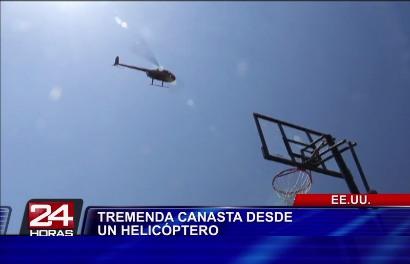 Impresionante: joven anotó canasta de baloncesto desde un helicóptero