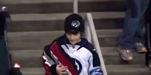 Keaton Hamin, de 9 años, tuvo un conmovedor gesto para con la niña Alyx Delaloye que llevó la atención del mundo fuera del campo de juego en el partido de los Winnipeg Jets.