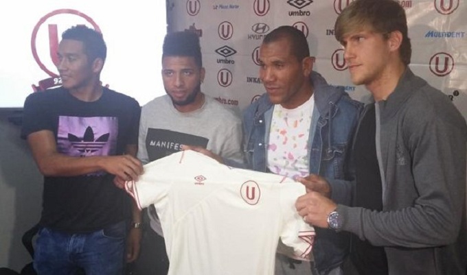 Universitario de Deportes presentó de manera oficial a los nuevos jugadores que reforzarán su plantel con miras a la Copa Sudamericana. Josué Estrada, Alexi Gómez, John Galliquio y el uruguayo Diego Rodríguez, son las nuevas caras del equipo dirigido por Roberto Chale.
