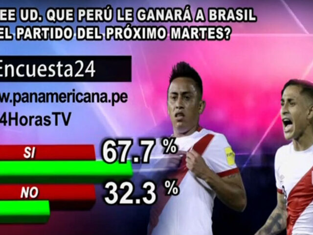Encuesta 24: 67.7% cree que Perú vencerá a Brasil este martes