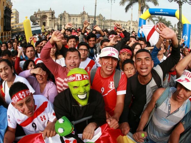 Hinchas se reúnen en la Plaza de Armas para ver partido Perú vs Suecia