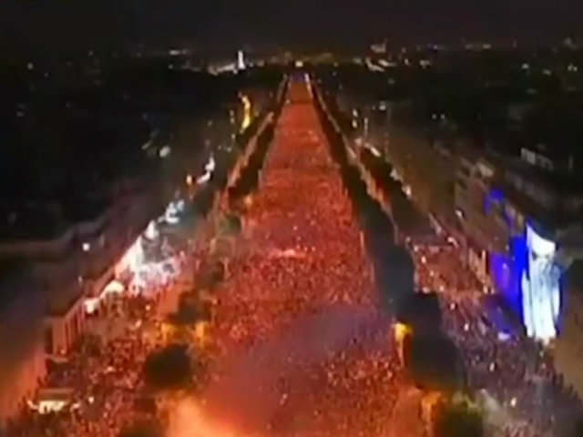 Apoteósica celebración en Francia, tras la victoria de su selección frente a Bélgica y su pase a finales. 20 mil hinchas se reunieron en París, en su avenida más grande, los Campos Elíseos, y festejaron con luces de bengala, banderas, fuegos artificiales, y la alegría de quedar finalistas.