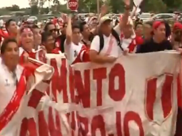 A pocas horas de disputarse el ‘Clásico del Pacífico’, cientos de hinchas de la ‘Blanquirroja’ se hicieron presentes a los exteriores del lugar de concentración de la selección para brindar su respaldo.