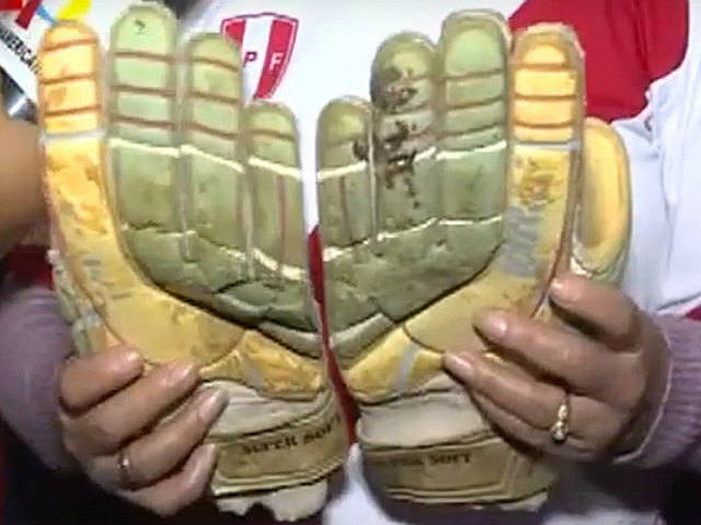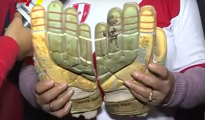 La tía de ‘Pierito’, como es conocido Gallese por su familia y vecinos, mostró los primeros guantes que el arquero peruano usaba cuando era adolescente y practicaba para convertirse en el futbolista de hoy.