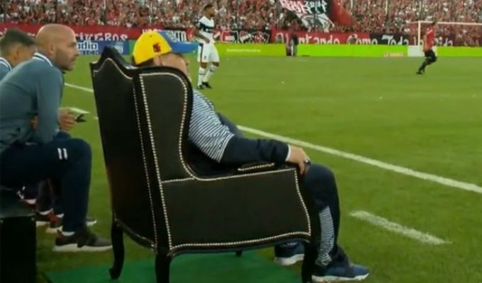 El equipo rival le obsequió al astro argentino un trono al borde del gras, desde donde miró todo el partido.