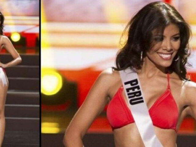 La representante peruana impactó a jurados durante desfile en traje de baño en el que lucio un sexy bikini rojo, complementado por su fina figura y singular carisma.