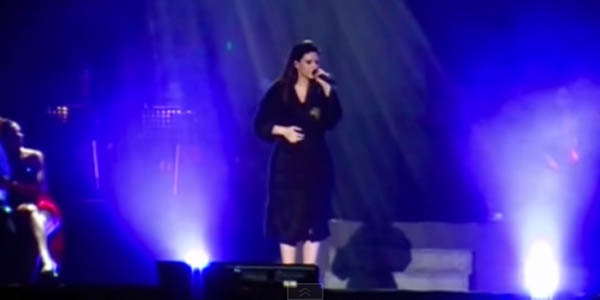 El hecho se produjo cuando, luego de un breve descanso, la italiana salió nuevamente al escenario para interpretar una de sus canciones vestida con una bata.