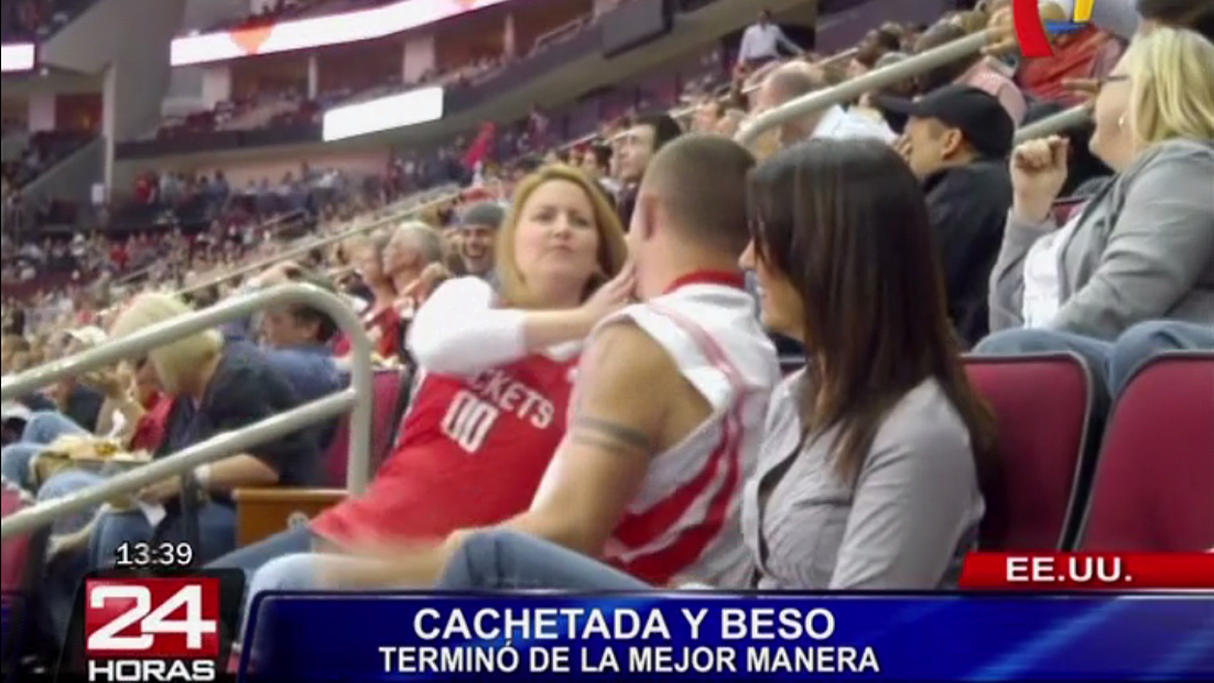 Un sujeto quiso aprovechar que la ‘cámara del beso’ lo enfocara para besar a su amiga, pero ella le respondió con una fuerte cachetada.