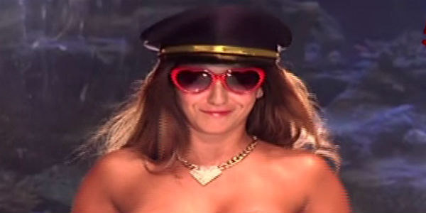 La modelo Tilsa Lozano opacó a las demás participantes en un desfile realizado esta noche en Mega Plaza del Cono Norte con un atrevido topless.