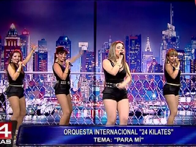 Melissa García, Lumy Cano, Tamara Sotomayor y Lizbeth Aliaga estuvieron en los estudios de 24 Horas Mediodía para interpretar su nuevo tema titulado ‘Para mí’. Las guapas integrantes de la Orquesta Internacional ‘24 Kilates’ brindarán un súper espectáculo este 22 y 29 de noviembre en San Juan de Lurigancho y en el Centro Comercial Mega Plaza, respectivamente. Asimismo el 31 de diciembre recibirán el 2015 con toda la población de Trujillo.