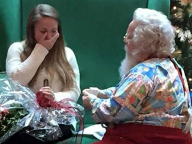 Dos celebraciones en una. El sargento estadounidense destacado en Afganistán, Clint Underhill, quiso proponerle matrimonio a su novia Kimberly Roberts en estas fiestas y no tuvo mejor forma de hacerlo que con la ayuda de Papá Noel y en complicidad con la madre de ella. “Kimberly, nuestro tiempo juntos hasta ahora ha sido poco menos que increíble”, inicia la carta de Underhill leída por Santa Claus a una sorprendida joven. Poco después, éste ofrece el anillo de compromiso y Roberts acepta para cerrar una escena romántica llena espíritu navideño.