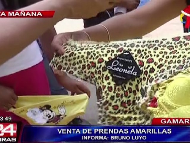 Como todos los años, las prendas amarillas se convierten en una de las cábalas preferidas por la población para recibir el año que viene. Un equipo de Panamericana Televisión hizo un recorrido por los locales comerciales del emporio de Gamarra y entre las novedades para este 2015 están las ropas interiores de la ‘Tigresa del Oriente’, y otras que incluyen estampados de billetes de dólares.
