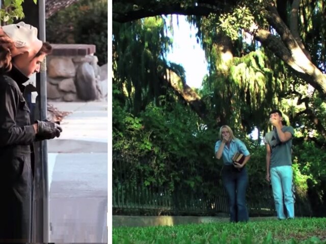 Vestido con un overol y una máscara de látex, Alec Wells pacientemente acechó y sorprendió a su novia, apareciendo detrás de un arbusto.