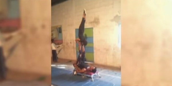 La asombrosa rutina circense fue captada por un aficionado y difundida en YouTube.