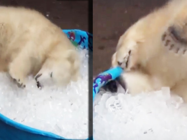 La osita de 10 meses se ha convertido en toda una sensación en las redes sociales con este baño en una piscina de hielo.