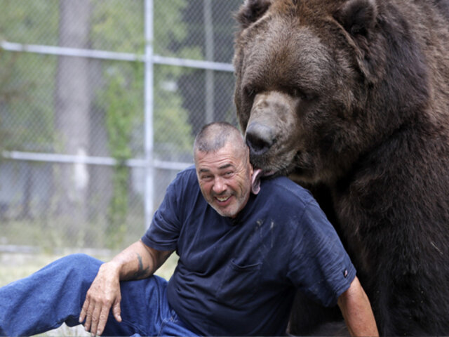 Los videos de Jim Kowalczik, responsable del Orphaned Wildlife Center, y Jimbo, un oso kodiak de 22 años, le han dado la vuelta al mundo a través de las redes sociales.
