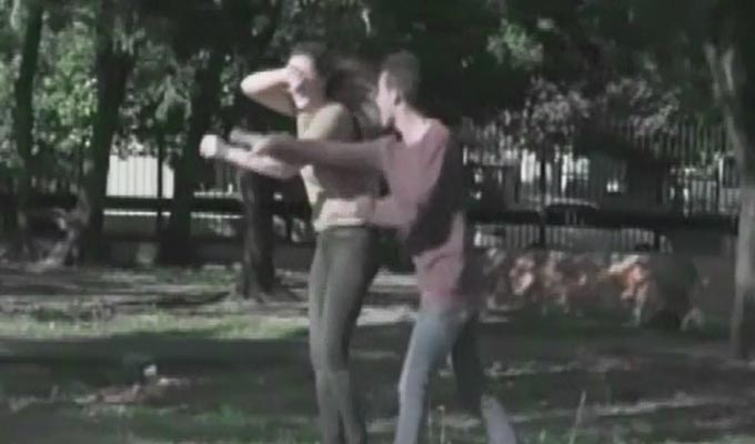 El video muestra en la primera etapa del experimento, a una pareja pelando en un parque, el hombre reclamándole a la mujer con voz alta, esto llama la atención de las personas que se encontraban en el parque. En el momento que el hombre empuja violentamente a la mujer las miradas aumentan, y origina que una testigo del hecho se acerque a él y le advierte que detenga su comportamiento, sucesivamente varias personas se acercan para evitar un incidente mayor.