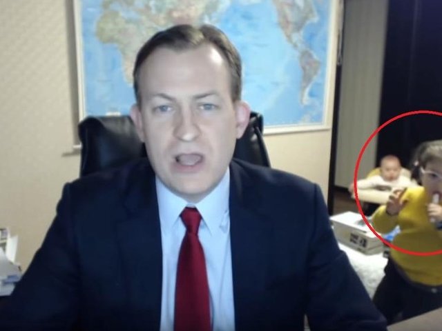 Mientras Robert Kelly era entrevistado en vivo desde su casa para responder serias preguntas sobre el presidente de Corea del Sur, Park Geun-hye. Todo iba con normalidad cuando de pronto sus hijos ingresaron a su despacho.