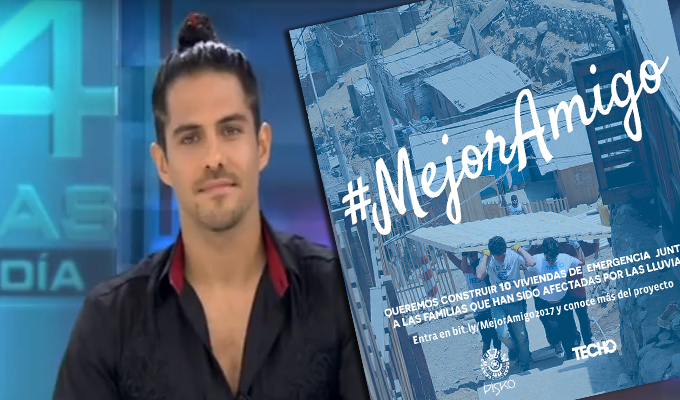 El cantautor peruano Pisko y la ONG “Techo Perú” se unen en una innovadora campaña de recaudación de fondos para financiar la construcción de viviendas de emergencia para familias que se vieron damnificadas por El Fenómeno del Niño Costero, en los primeros meses de este año.