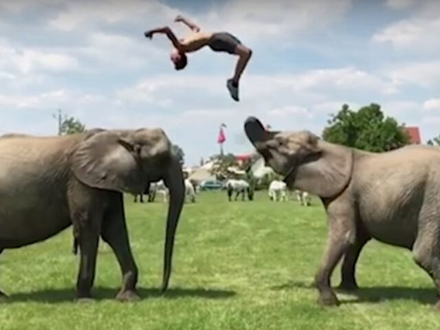 Joven húngaro realiza asombrosas acrobacias con elefantes
