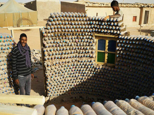 Un ingeniero construye casas con botellas recicladas en el desierto de Tindouf.