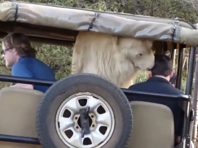 La expedición se estaba realizando con normalidad hasta que un león blanco apareció y provocó un tremendo susto a los turistas. Sin duda, un viaje que no se olvidarán.
