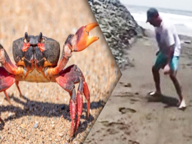 Un usuario de las redes sociales ha compartido en su cuenta de Facebook un insólito vídeo de una pelea entre un bañista y un cangrejo en una playa del sur. En la grabación se puede ver cómo el crustáceo, que se encuentra dentro de su hábitat, toma la decisión de defenderse del intruso, que parece tener la intención de sacarlo del lugar.