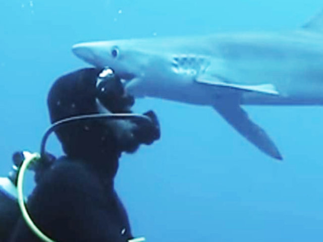 El tiburón nunca mostró agresividad, por tanto, el submarinista nunca estuvo en peligro.