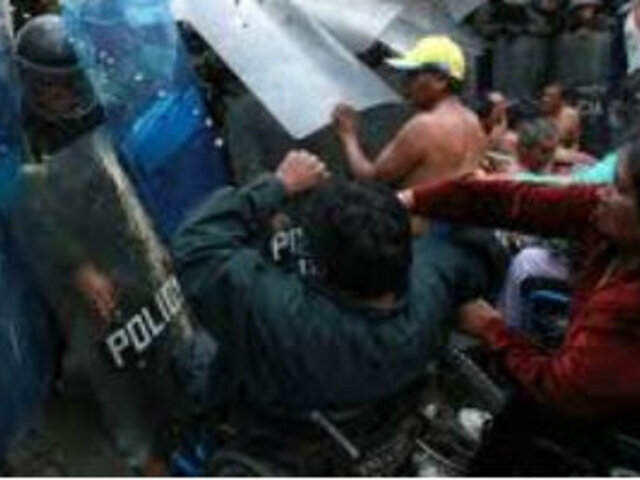 Más de un millar de discapacitados junto con familiares provistos de palos y muletas se enfrentó a un grupo de policías. Los manifestantes provenientes de distintas provincias del país marcharon para exigir un aumento del bono anual.