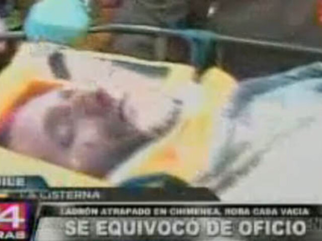 La policía señaló que el individuo quedó atrapado a la mitad de la chimenea de cuatro metros de alto. El dueño de casa se quejó de los daños que sufrió su vivienda por las tareas de rescate.