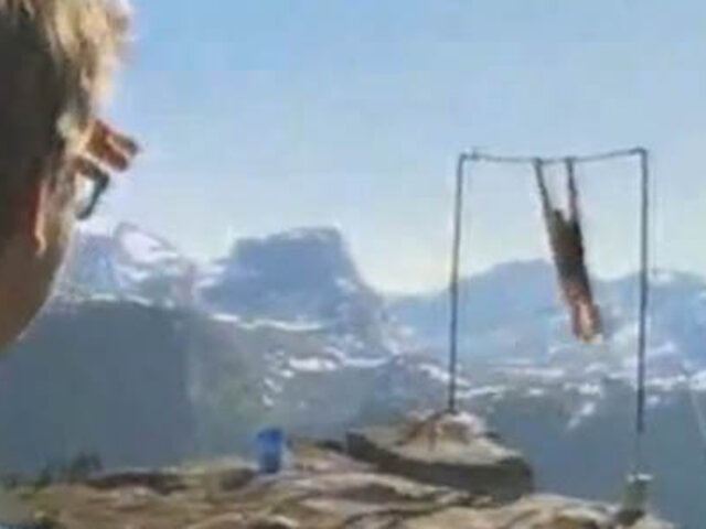 Richard Henriksen, cirujano de profesión, se preparaba para llevar a cabo un truco acrobático al borde de un despeñadero, cuando sufrió este espectacular accidente que de milagro no le costó la vida.