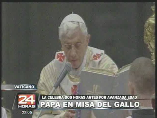 En el Vaticano, el papa Benedicto XVI celebró la tradicional Misa del Gallo en la Basílica de San Pedro, la octava de su pontificado. De nuevo dos horas antes de la medianoche para evitar fatigarse debido su 86 años de edad.