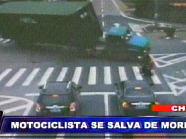 China: motociclista salvó milagrosamente de morir aplastado por tráiler