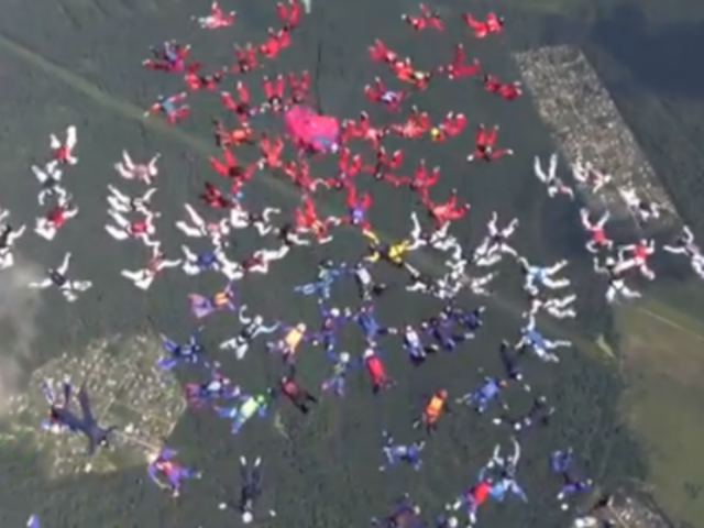 VIDEO: paracaidistas rompen récord mundial de caída libre con 'flor de 101 pétalos'