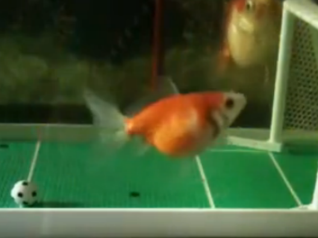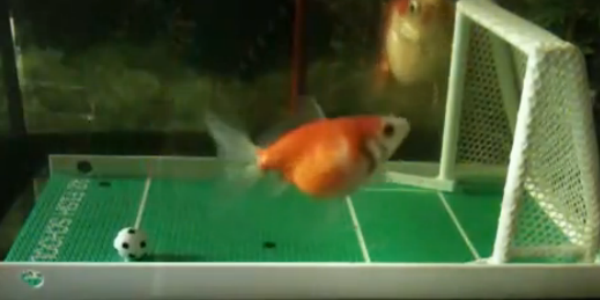 16/07/2013Entrenan a pez dorado para jugar fútbol y anotar goles en su pecera Después de cuatro años de entrenamiento un pez aprendió a jugar fútbol.