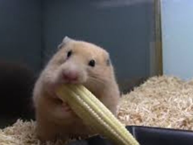 Un hámster se tragó un choclo más grande que él y lo hizo desaparecer en la bolsa de su mejilla.