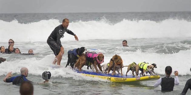 Cientos de perros participaron en concurso anual de surf en Estado Unidos