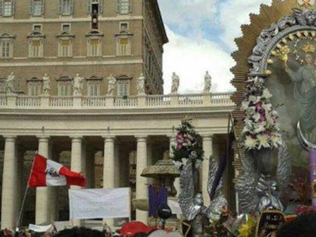 “Un saludo especial a la comunidad peruana en Roma, que ha traído en procesión a la sagrada imagen del Señor de los Milagros. La imagen está ahí en medio de la Plaza, saludemos todos”, añadió.