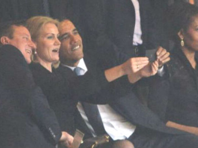 Una foto de Barack Obama con sus pares de Gran Bretaña y Dinamarca en el homenaje a Nelson Mandela fue blanco de críticas en las redes sociales.