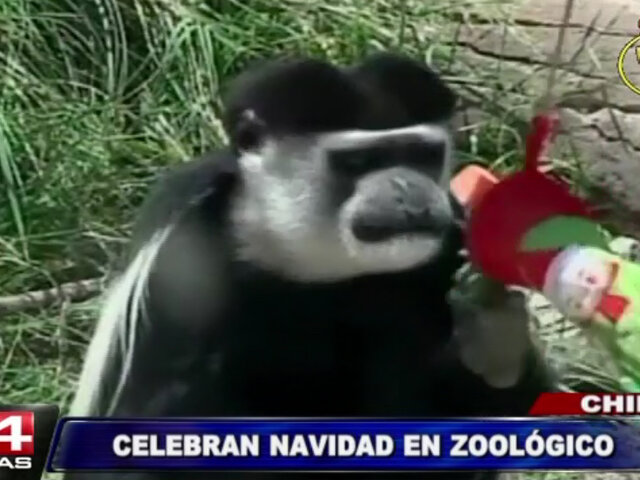 Los leopardos, osos y chimpancés de un zoológico de Santiago de Chile celebraron la Navidad de una manera singular e incluso obtuvieron regalos. Los animales recibieron sus frutas y otros alimentos favoritos en el marco de las celebraciones por la Nochebuena.