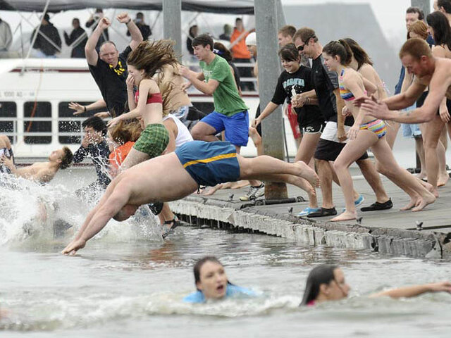 Miles de personas celebraron la llegada del Año Nuevo con el tradicional 'chapuzón helado'. No importa el frío que haga, como mínimo 25.000 personas se zambullen en las aguas heladas.
