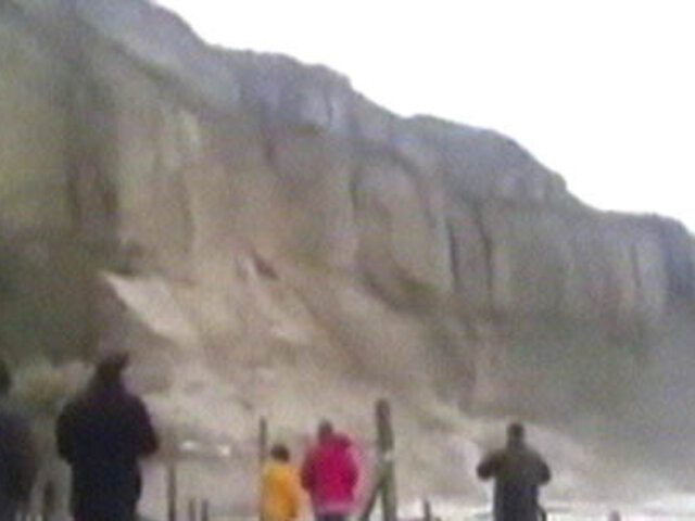 Un grupo de turistas en Inglaterra lograron registrar en video los precisos instantes que un acantilado se derrumba. No se reportaron víctimas que lamentar.
