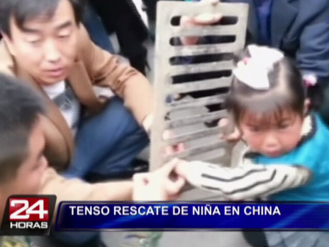 Dramático rescate de una niña que quedó atrapada en una alcantarilla en China