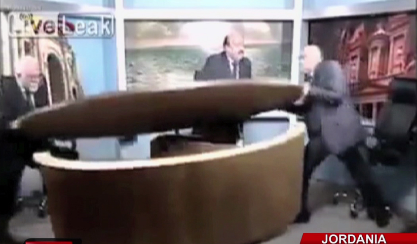 Un acalorado debate acerca del conflicto en Siria obligó a suspender un programa de televisión porque los protagonistas se agarraron a golpes. Las imágenes muestran como los entrevistados pierden el control a tal punto que terminaron rompiendo la mesa de conducción.