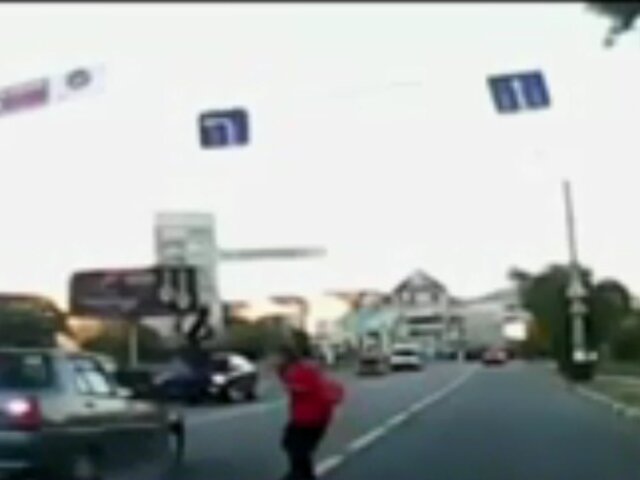 La cámara de un auto en Rusia, captó el preciso instante en que un imprudente niño fue arrollado por otro vehículo cuando intentaba cruzar la pista. El menor pretendió cruzar, corriendo por el asfalto cuando los carros estaban en marcha pero no se dio cuenta de que un auto venía a toda velocidad y lo haría volar por los aires.
