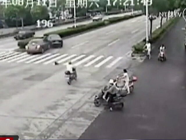 Las cámaras de seguridad de la provincia de Zhejiang registraron los precisos instantes en un perro causa un choque múltiple al cruzar intempestivamente la pista. Las imágenes muestran como el can es impactado por un auto, que en su intento de no arrollar al perro termina chocando con un vehículo e invade el carril contrario. Por otro lado en Rusia, la cámara de vigilancia de un vehículo registró el momento en que un motociclista sale volando por los aires tras impactar contra un auto.