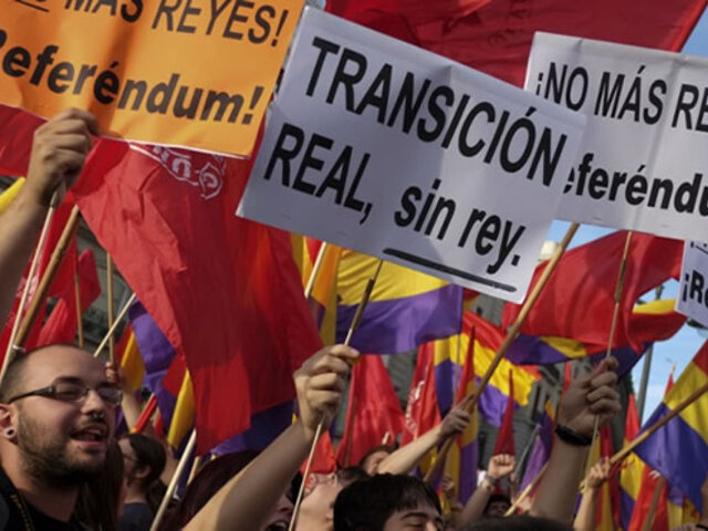 Más de 500 españoles protestaron en contra la monarquía y desplegaron banderas republicanas exigiendo un referéndum. Al menos cinco personas fueron detenidas.